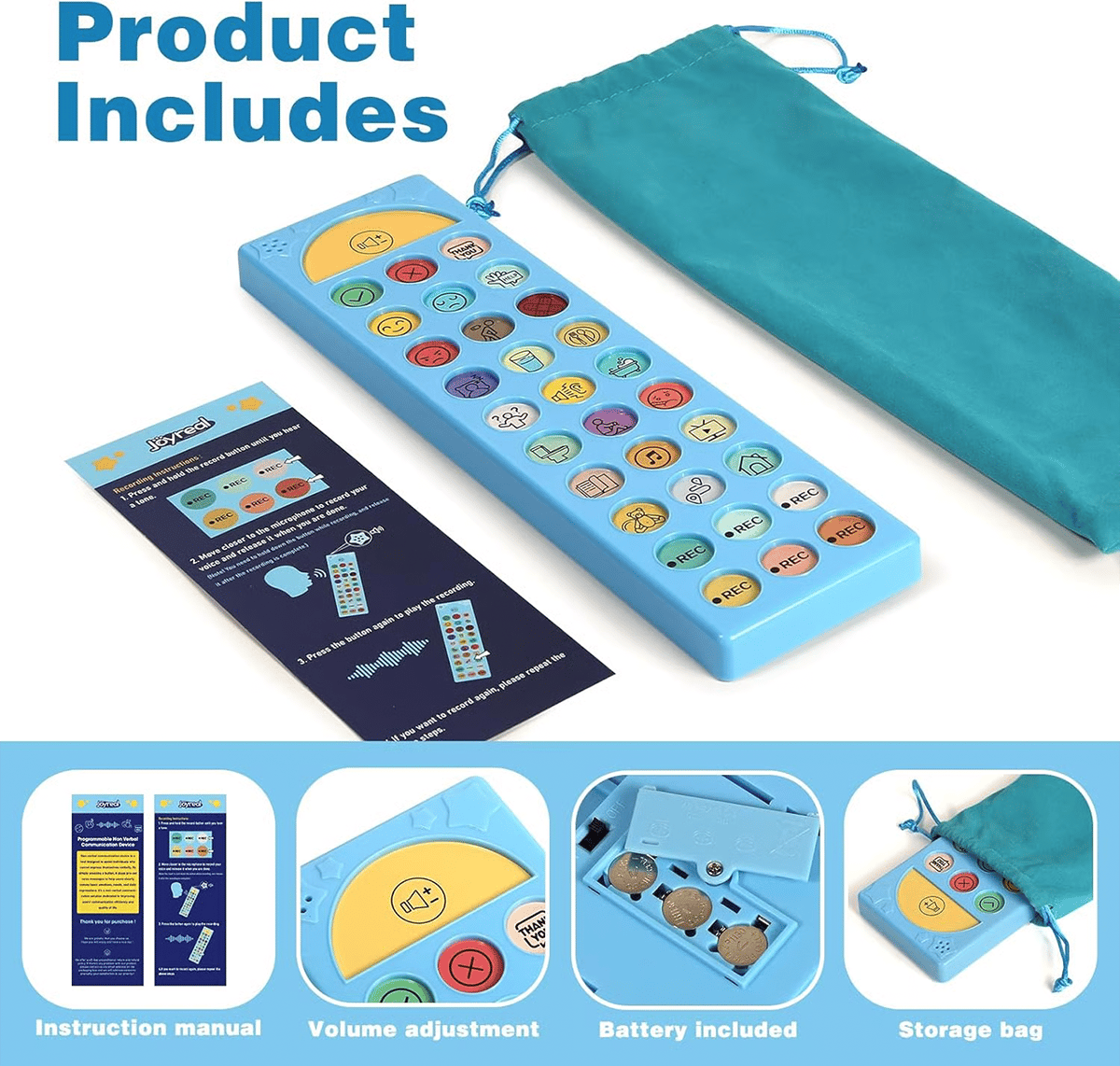 24 Easy To Understand Talking Buttons- Our AAC device for speech comes with 24 pre-installed instructions in a picture and color format that makes it very easy to communicate simple.