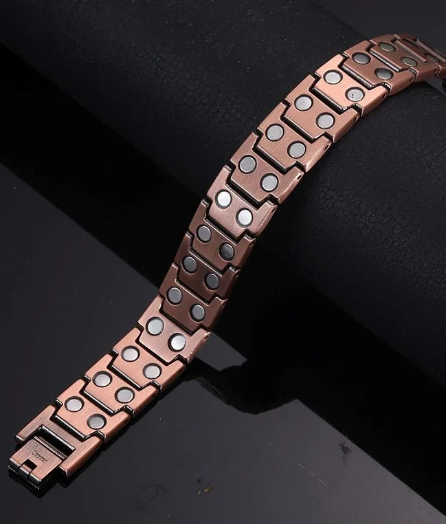 This handcrafted magnetic copper bracelet blends traditional healing with bold, masculine design — made especially for those who value both wellness and style.