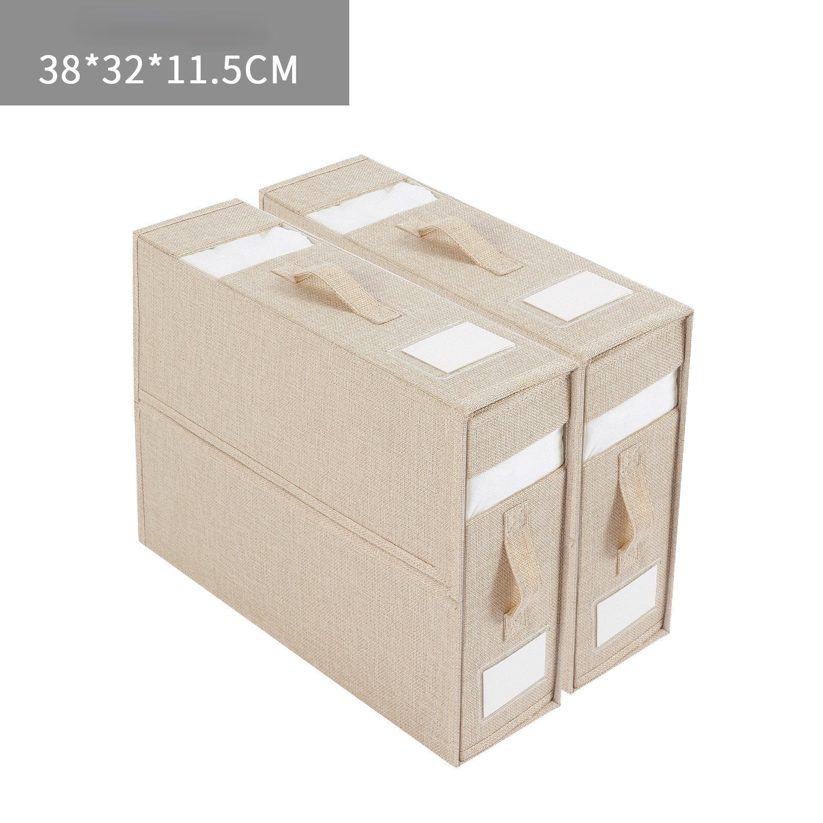 Transparent window shows the color, pattern and material; Clear Labels indicate the size; Reinforced handles make the organizer easy to remove from the closet.