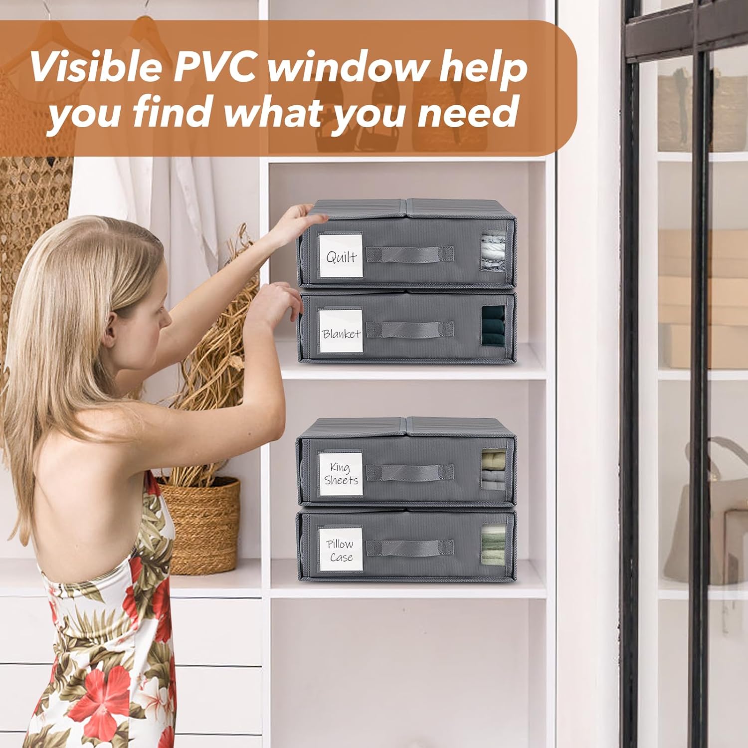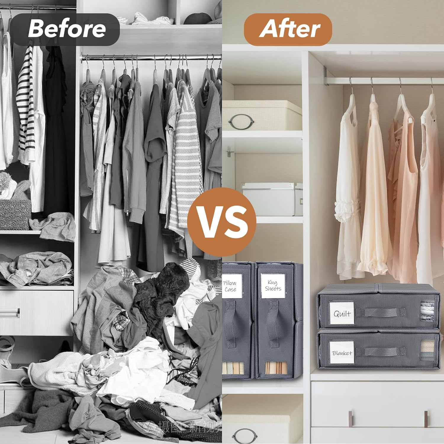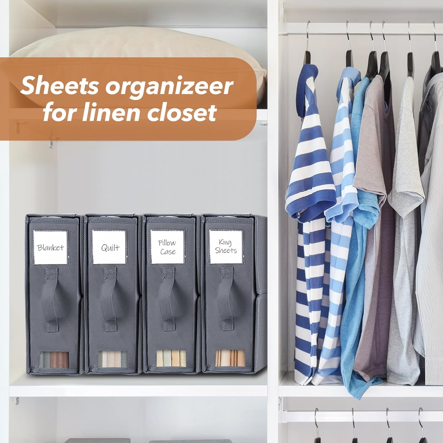 😄Stop the frustrating search through messy piles and keep your bed sheets neatly organized and easily accessible with our bed sheet organizers. Featuring custom labels and clear windows, you can quickly find the exact sheets you need without the hassle.