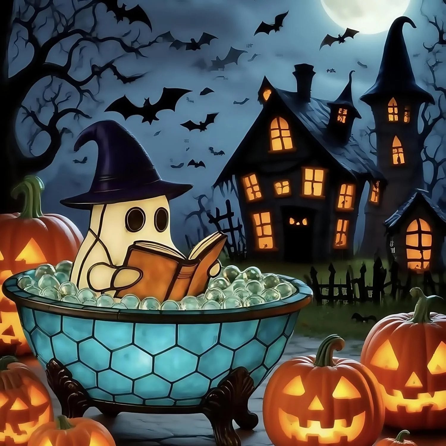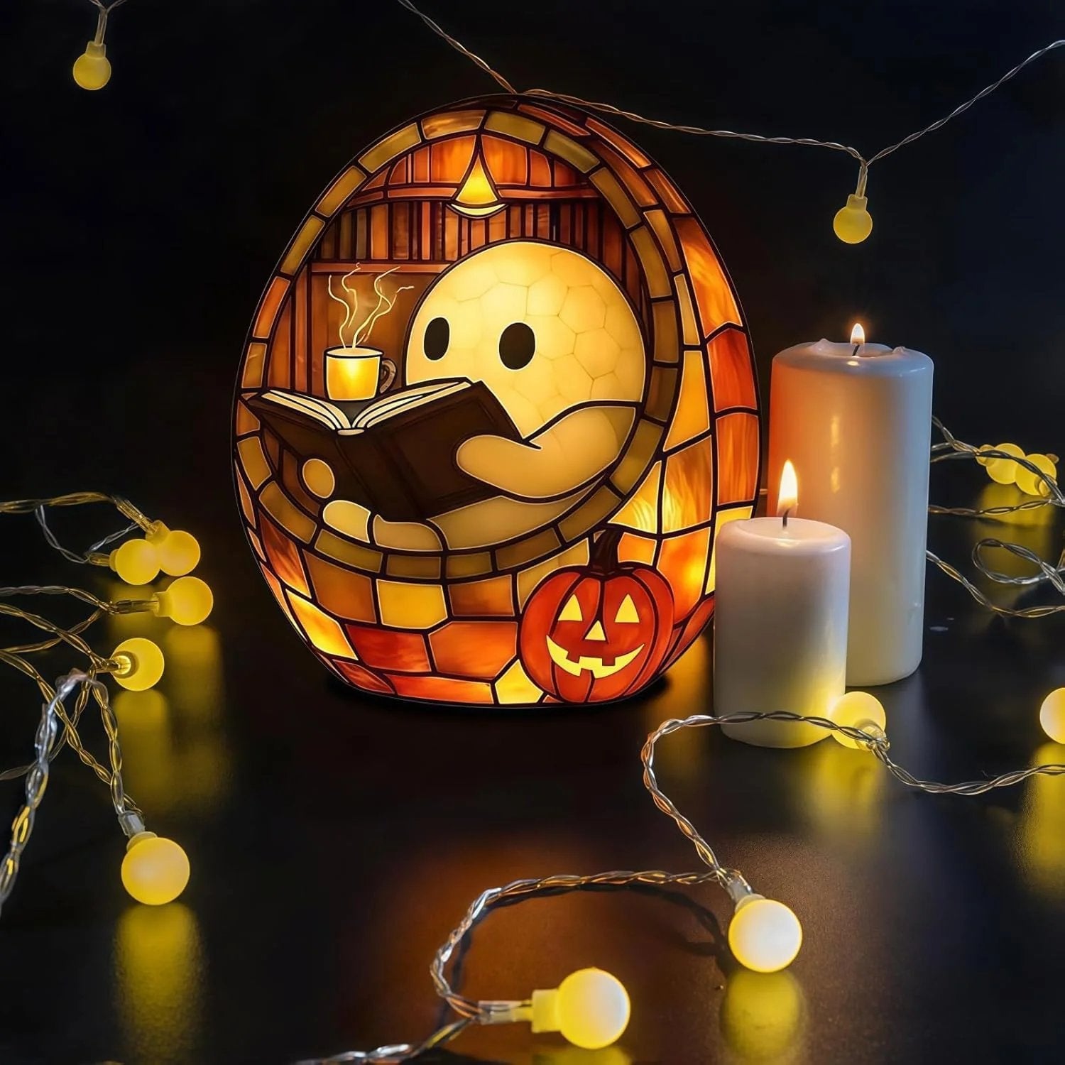 🎃👻Ghost Reading Book Lamp-Halloween Night Light with Glowing Ghost & Book Design