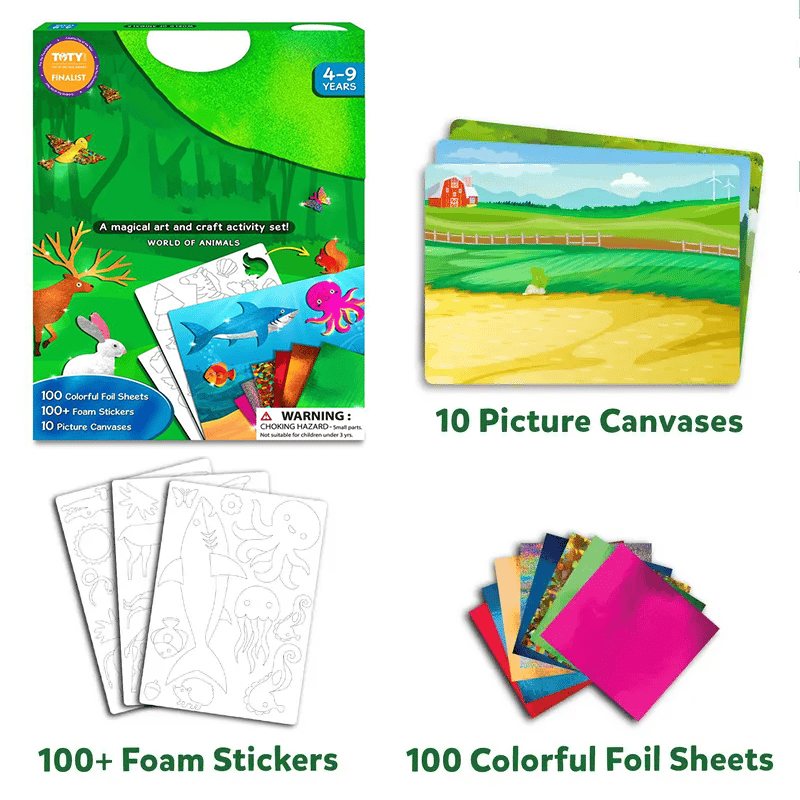 •Includes: 100+ Foam Stickers, 100 Colorful Foil Sheets, 10 Picture Canvases, Googly Eyes & Instruction Manual
