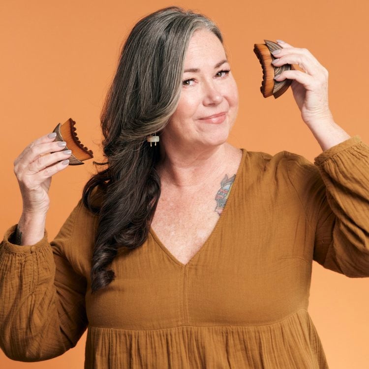 Although the face and body brushes may look similar, they differ slightly in bristle firmness to deliver appropriate pressure from head to toe.