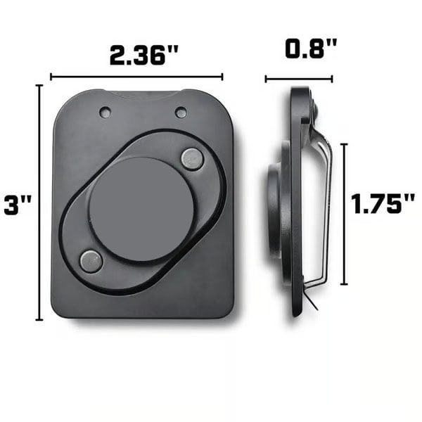 Spring-steel clip w/retention tab that fits any belt up to 1.75in (45mm).