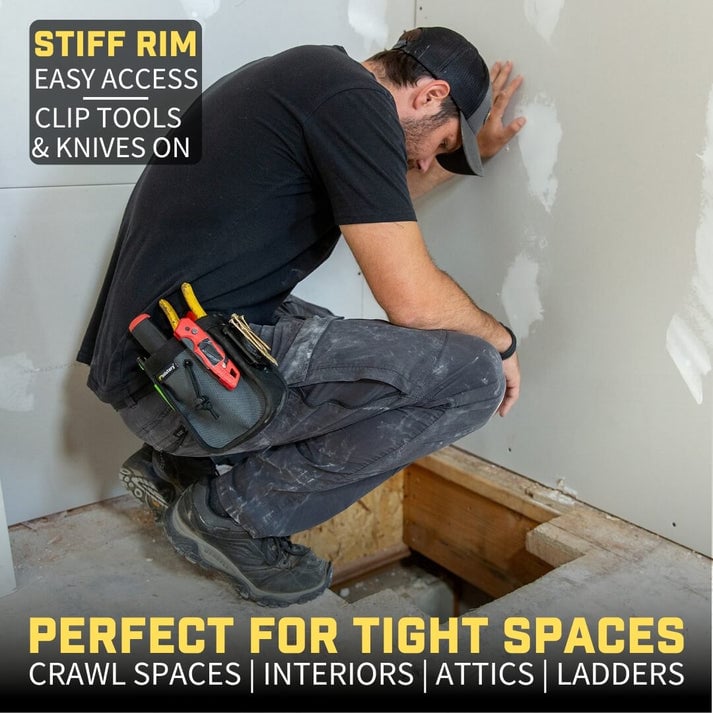 The compact design makes this clip perfect for tight workspaces. Whether you're climbing, crouching, or working in cramped areas, your tools stay right where you need them—out of the way but always accessible.