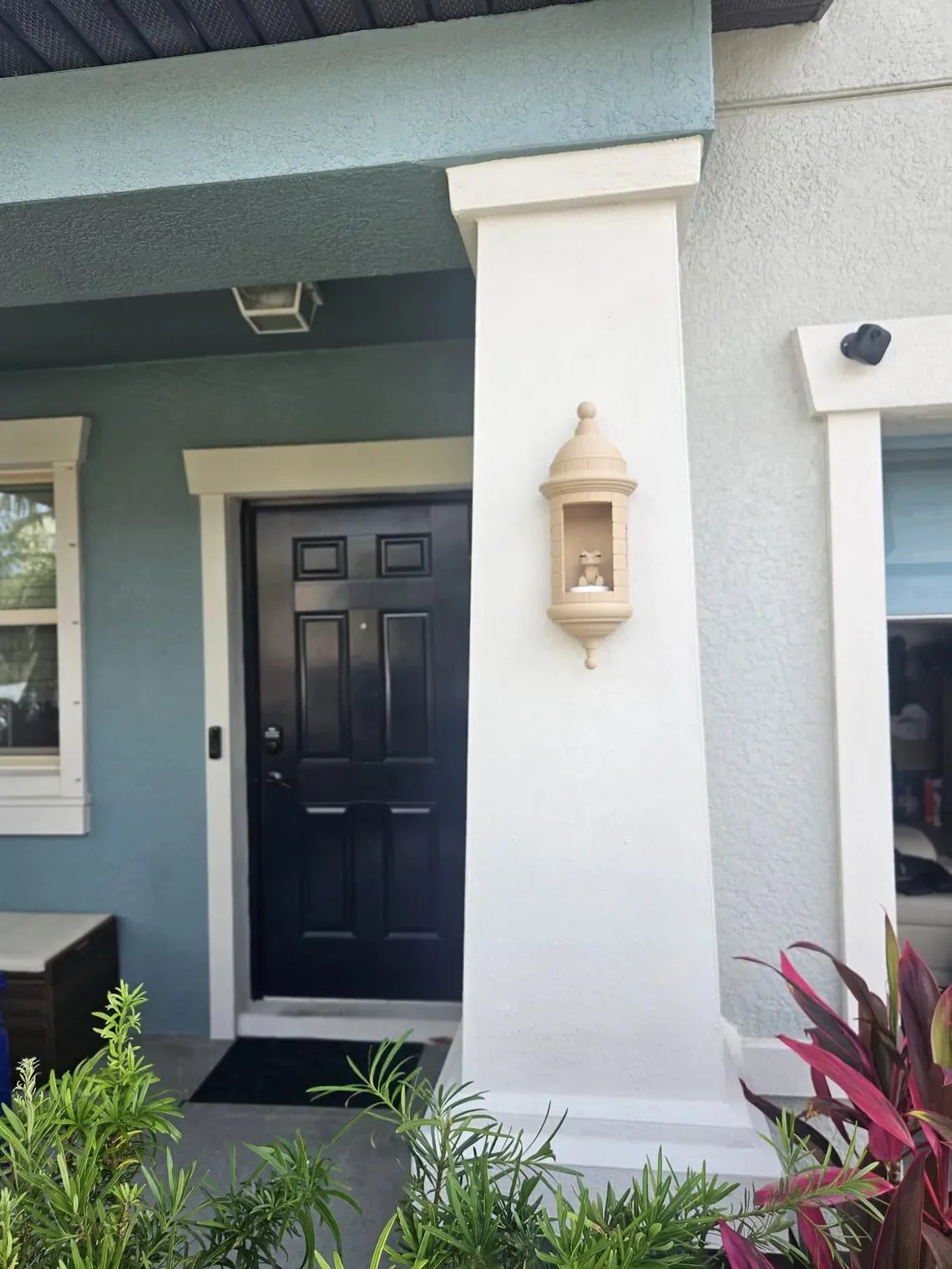This wall-mountable decor includes a built-in light, adding a soft glow that highlights the Garita's design. The flat back makes it easy to attach to a wall or wooden backing.